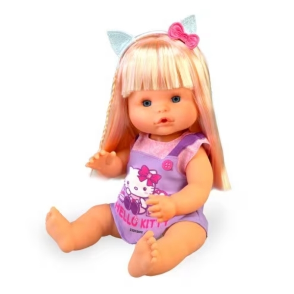 Nenuco 35 cm con corpo duro e capelli lunghi biondi è la bambola perfetta per le bambine che amano creare acconciature uniche. Dotata di accessori per lo styling e di un vestitino di Hello Kitty, permette di sviluppare fantasia e manualità mentre si inventano nuovi look. Realizzata con materiali sicuri e resistenti, è ideale come regalo creativo e divertente per momenti di gioco pieni di fantasia.