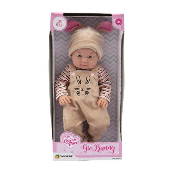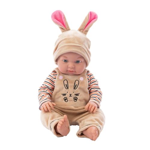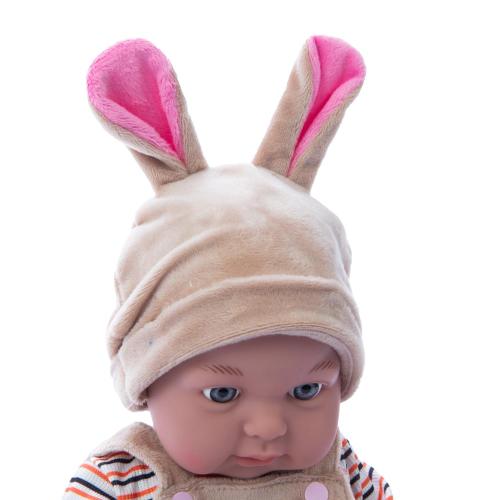 Dolce bebè 40 cm in vinile con morbida tutina e cappellino con orecchie da coniglietto!
