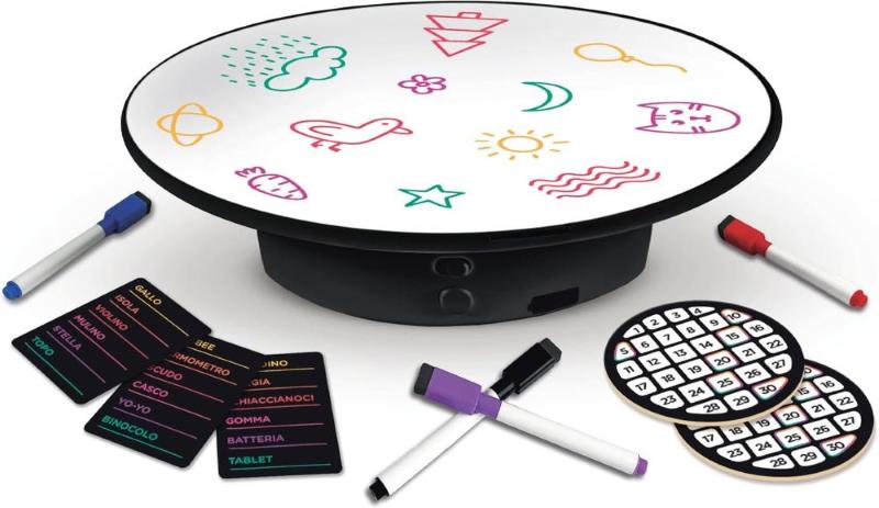 GIOCO DA TAVOLO: disegna mentre tutto gira e spera che qualcuno indovini! Un esilarante party game perfetto per le serate in compagnia; i giocatori devono disegnare mentre la lavagna ruota rendendo ogni tratto una sfida; vince chi totalizza più punti indovinando e facendosi indovinare