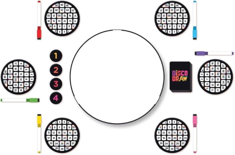 COME GIOCARE: ogni giocatore disegna un concetto su una lavagna mobile mentre gli altri provano a indovinare; a ogni disegno indovinato corrisponde un punto per chi ha disegnato e per chi ha indovinato; vince chi ottiene il punteggio più alto