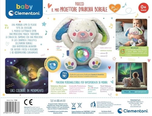 FIOCCO, PELUCHE PROIETTORE: una tenera bambola educativa, in morbida stoffa, con un modulo elettronico che proietta l'Aurora Boreale, creando un'atmosfera rilassata e favorendo il sonno