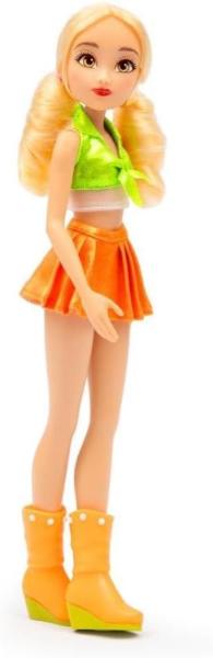 Stella Originale - Stella indossa il suo look ufficiale: top lime brillante con nodo frontale, minigonna plissettata arancio e stivaletti chunky con tacco. Un outfit che sprigiona luce, energia e stile, come la vera fata del Sole e della Luna.