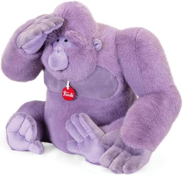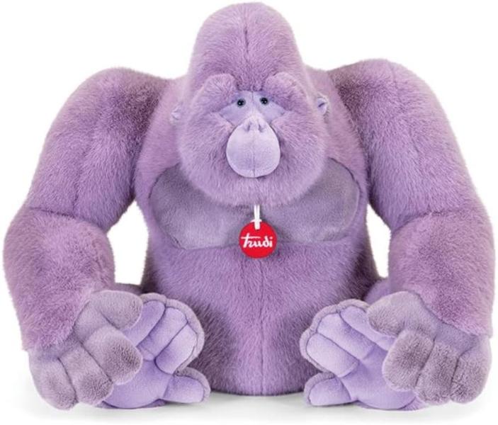 CONTENUTO - Gorilla Giorgio . Dalla giungla con furore (e un tocco di viola): arriva Giorgio, il peluche gorilla più stiloso di casa Trudi! Morbido, buffo e pronto a farsi coccolare, è il re degli animali esotici… almeno sul divano!