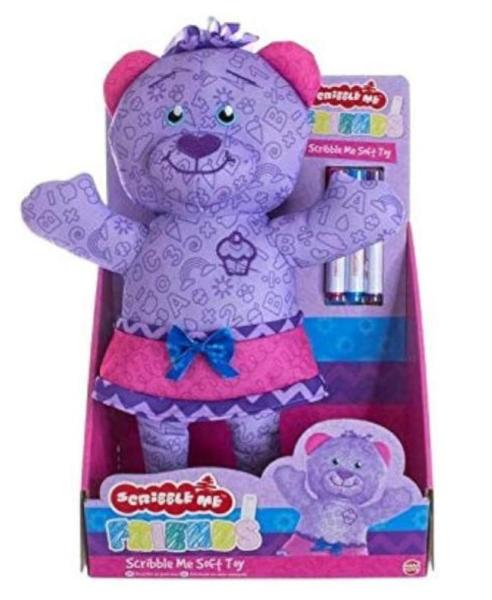 SCRIBBLE ME: FRIENDS BEAR - LILLA - Peluche Scribble me! Questo grazioso e tenero orsetto da 38 cm può essere scarabocchiato e disegnato per personalizzare il tuo amico di peluche. Ore di incredibile divertimento scarabocchiando con il tuo orsetto! Scarabocchiami, lavami e ricomincia! Lascia che l'immaginazione del tuo bambino voli mentre personalizza il suo peluche con disegni e motivi unici usando le penne colorate lavabili incluse. Quando hai finito di scarabocchiare, mettilo semplicemente in lavatrice per poter ricominciare. Portatile e versatile: progettato come un giocattolo lavabile che può essere portato ovunque, garantendo divertimento scarabocchiando in movimento senza sporcare. Ogni set include 1 peluche e 3 pennarelli colorati lavabili.