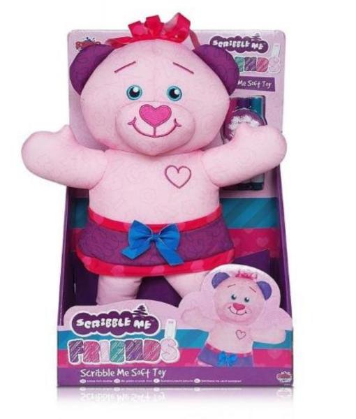 SCRIBBLE ME: FRIENDS BEAR - ROSA - Peluche Scribble me! Questo grazioso e tenero orsetto da 38 cm può essere scarabocchiato e disegnato per personalizzare il tuo amico di peluche. Ore di incredibile divertimento scarabocchiando con il tuo orsetto! Scarabocchiami, lavami e ricomincia! Lascia che l'immaginazione del tuo bambino voli mentre personalizza il suo peluche con disegni e motivi unici usando le penne colorate lavabili incluse. Quando hai finito di scarabocchiare, mettilo semplicemente in lavatrice per poter ricominciare. Portatile e versatile: progettato come un giocattolo lavabile che può essere portato ovunque, garantendo divertimento scarabocchiando in movimento senza sporcare. Ogni set include 1 peluche e 3 pennarelli colorati lavabili.