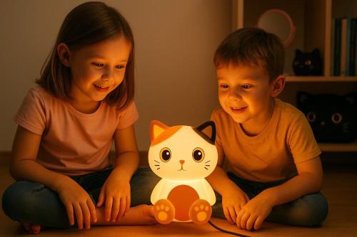 Ispirata alle tante luci notturne a forma di gatto disponibili sul mercato, questa lampada cattura l’attenzione con dettagli curati e una luce soffusa ideale per accompagnare il riposo senza abbagliare gli occhi.