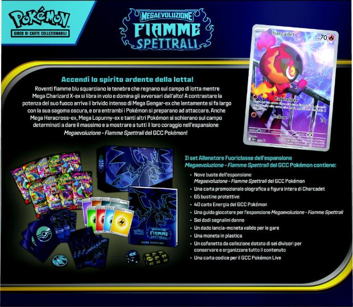 Il set Allenatore Fuoriclasse dell'espansione Megaevoluzione - Fiamme Spettrali del GCC Pokémon contiene: