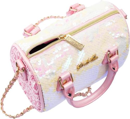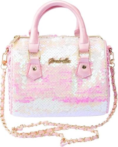 CARATTERISTICHE: la Girabrilla Borsa Bauletto presenta una tasca principale ad apertura a clip. Il rivestimento della borsetta è con paillettes reversibili che cambiano colore e in tessuto stile Tweed. La tracolla è a lunghezza regolabile e può essere trasportata a mano grazie alle maniglie.