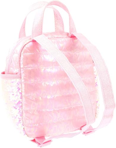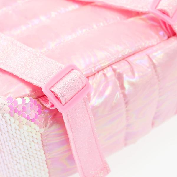 CARATTERISTICHE: lo zaino Mini Puffer presenta una tasca frontale con cerniera e due laterali aperte, in paillettes che cambiano colore e un simpatico portamonete a forma di unicorno.