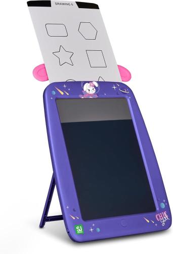 Lavagnetta lcd da 21,5 cm, display 10" multicolor perfetta da portare ovunque, ha opzione stand con piedistallo posteriore ripiegabile. Penna grafica inclusa e fissata da calamita.