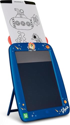 Lavagnetta lcd da 21,5 cm, display 10" multicolor perfetta da portare ovunque, ha opzione stand con piedistallo posteriore ripiegabile. Penna grafica inclusa e fissata da calamita.