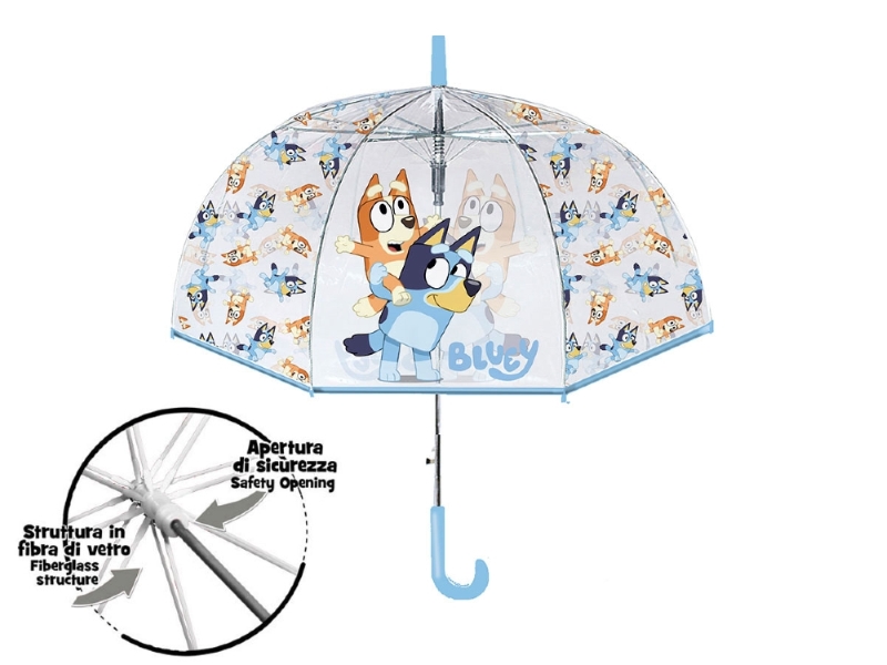 Ombrello cupola trasparente 42/8 Bluey perfetto per la pioggia con allegria