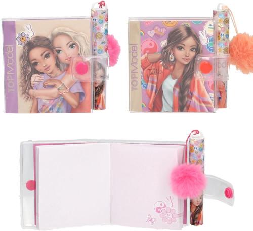 Un delizioso set di scrittura di TOPModel: il mini quaderno con il suo adorabile design a forma di modellino è dotato di una piccola penna a sfera abbinata (inchiostro blu, ricarica non sostituibile) e di un divertente ciondolo a forma di pompon in pelliccia sintetica. Ogni quaderno contiene circa 80 fogli con graziose illustrazioni.