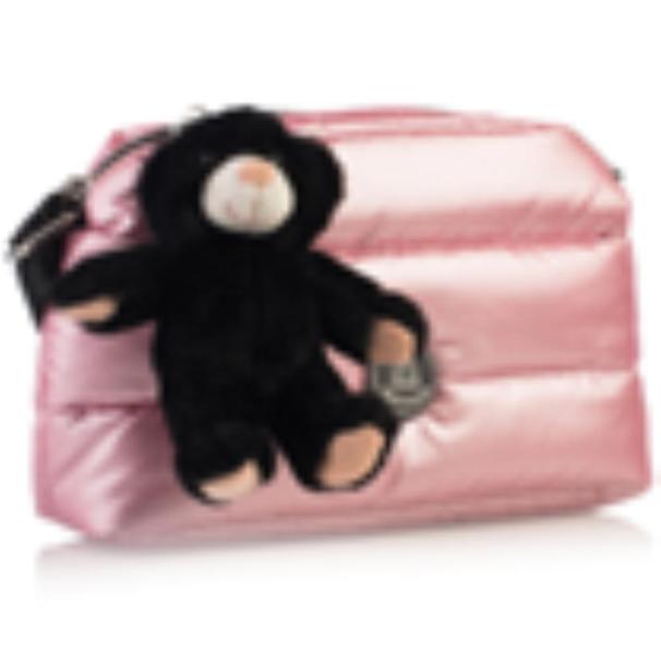 Un accessorio dal design dolce e moderno che unisce praticità e stile! Questa borsa a tracolla rosa è perfetta per completare ogni outfit con un tocco femminile, mentre il portachiavi a forma di orsetto nero aggiunge un dettaglio giocoso e originale.