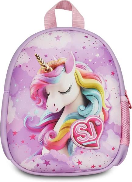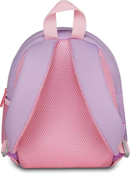 Zainetto con scocca frontale termoformata. Spallacci regolabili. Tasca laterale porta borraccia.