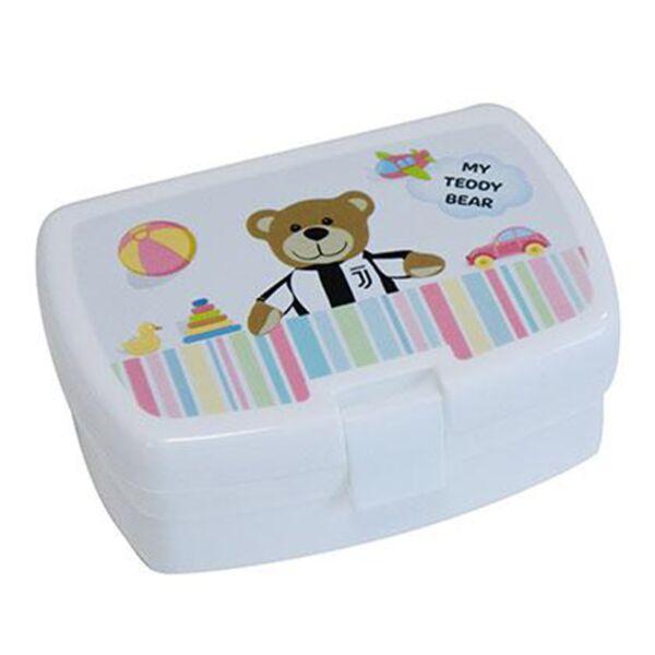 Contenitore da pasto bianco della Vecchia Signora per bambini. Pratico box per il cibo del tuo bambino, con un simpatico orsacchiotto con indosso la maglia bianconera.