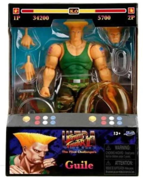 Rivivi le leggendarie sfide del celebre videogioco Street Fighter II con questa fantastica action figure dedicata a Guile, il carismatico combattente dell’aeronautica statunitense creato da Capcom.