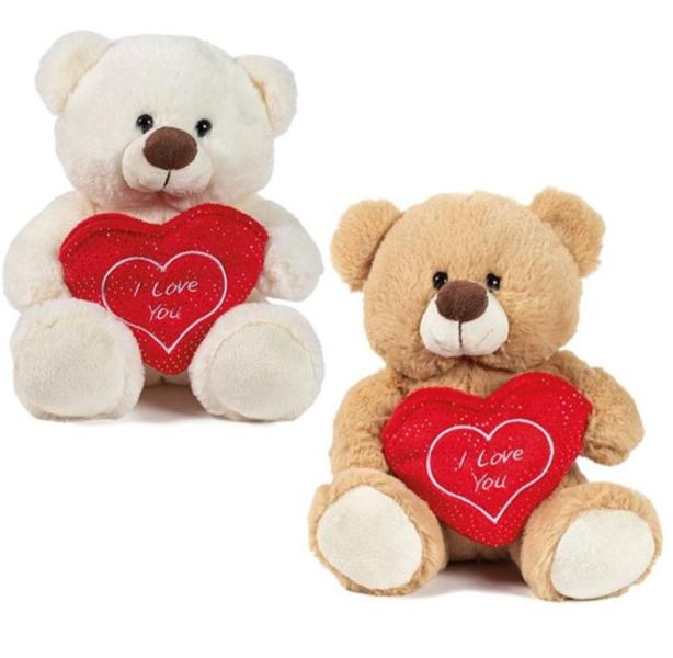 PELUCHE SAN VALENTINO ORSO 2 COLORI 23 CM CON TASCA CUORE E VELCRO