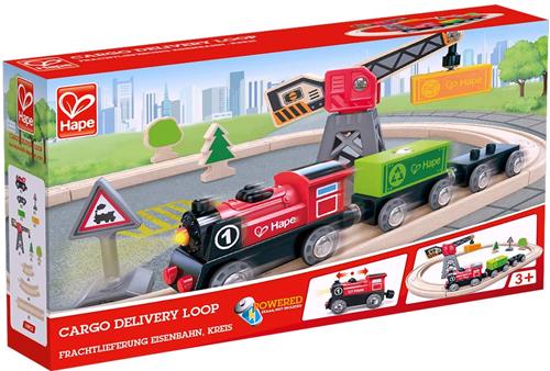 PISTA CON LOCOMOTIVA A BATTERIA E GRU