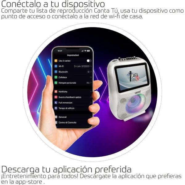 È lo strumento adatto per divertirsi in famiglia o con gli amici, all’aperto o indoor; grazie alla batteria ricaricabile è possibile utilizzare il Canta tu fino a 4 ore consecutive
