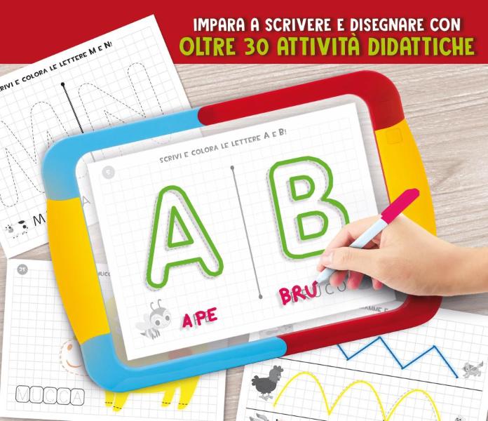 Divertiti ad accendere disegni, lettere e parole. Con i pennarelli fluo in dotazione e le schede da ricalcare, puoi liberare la tua fantasia. Impari a leggere e scrivere con le schede didattiche a difficoltà  progressiva.
