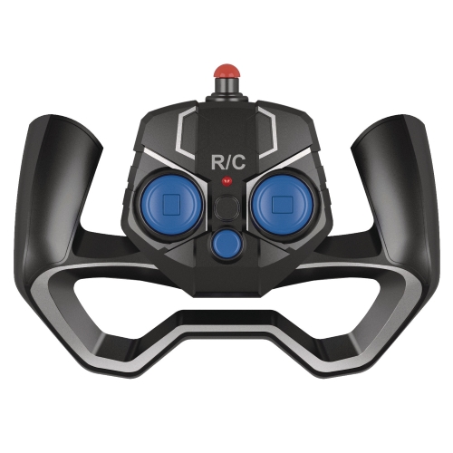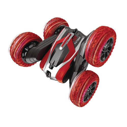 Veicolo radiocomandato con corpo "double face", luci led e radiocomando. Può raggiungere una velocità di 15 km/h e il radiocomando funziona a 15 m di distanza. Salta e ruota su se stesso! BATTERI AUTO ricaricabili telecomando non incluse