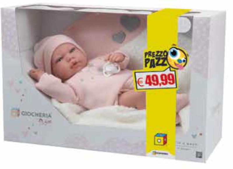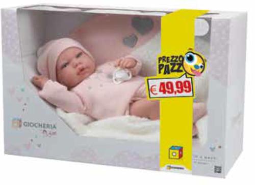 PREZZO PAZZO BAMBOLA ARIAS - REBORN BEBÈ 40 CM CORPO MORBIDO TUTINA ROSA CON PESO