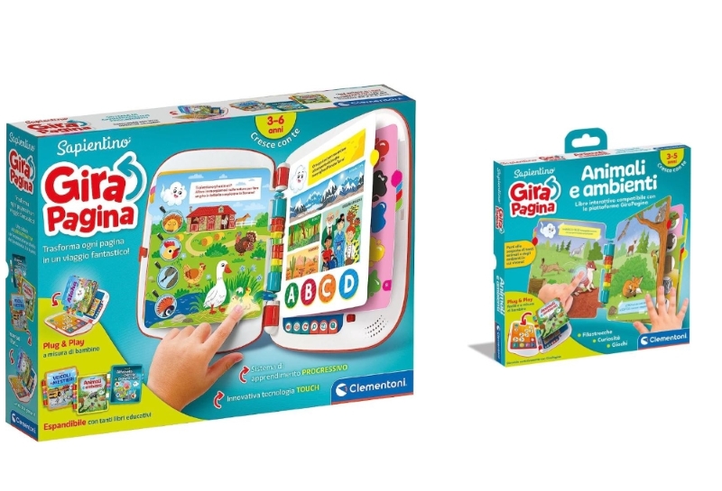 SAPIENTINO GIRA PAGINA LIBRO RACCONTASTORIE ELETTRONICO + LIBRO IN OMAGGIO ANIMALI E AMBIENTI