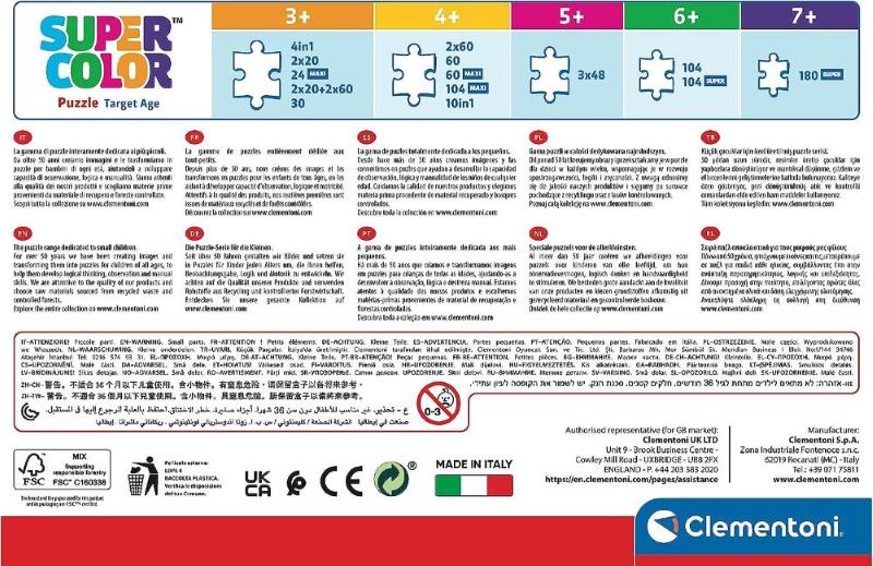 Supercolor è la linea di puzzle dedicata ai bambini che cresce insieme a loro proponendo immagini e formati adatti ad ogni età.
