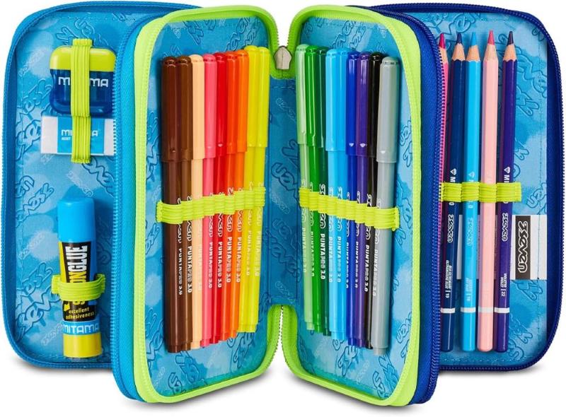 L astuccio Seven 3 zip è dotato di tre scomparti in cui potrai trovare tutti gli strumenti necessari per la tua giornata scolastica. Non ti resta che abbinarlo a uno zaino o trolley Seven per completare il tuo set.