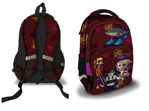 Zaino capiente con 3 zip e grafica BRAINROT, perfetto per ragazzi creativi e dinamici.