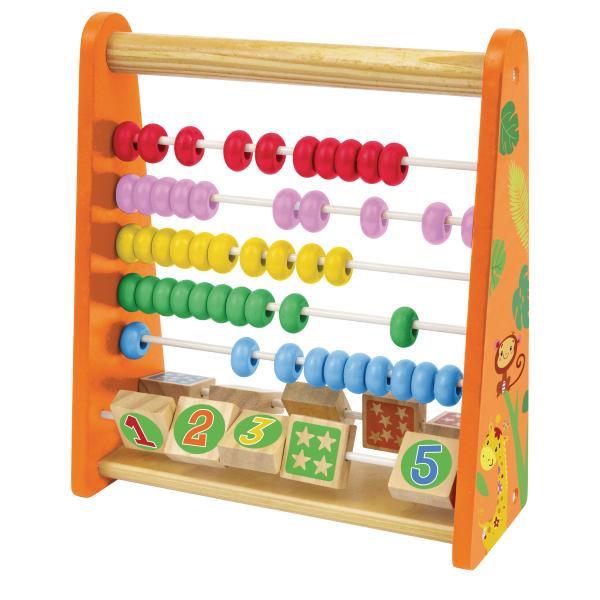 5 file di palline di colori diversi e 1 fila con tessere con numeri e disegni per imparare la matematica divertendosi!