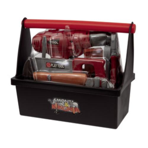 Cassetta degli attrezzi con trapano funzionante e 18 accessori inclusi.