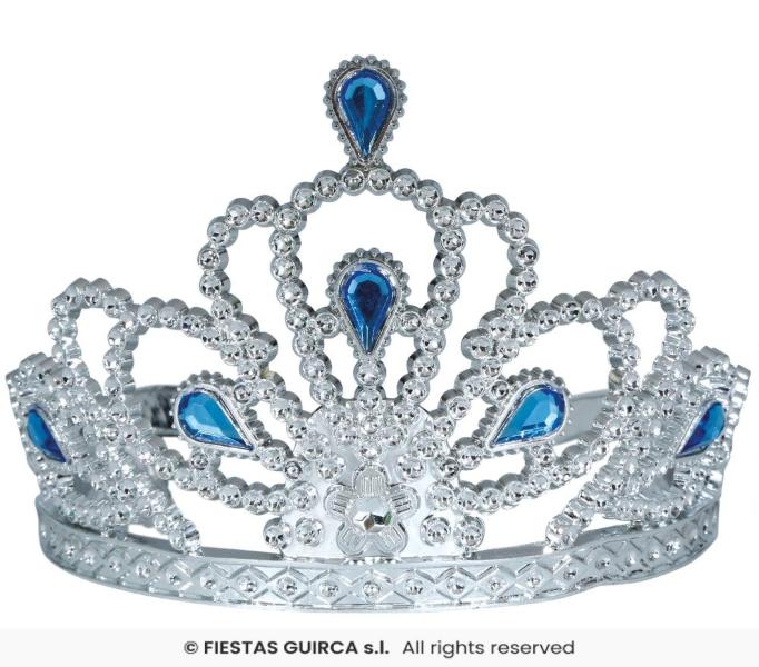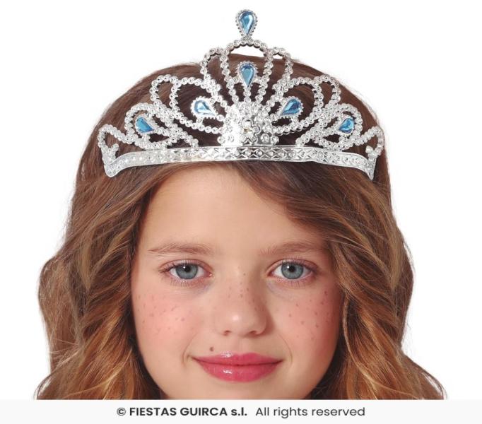 CORONA DIADEMA TIARA ARGENTO CON PIETRE BLU BAMBINA