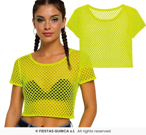 MAGLIA MAGLIETTA IN RETE GIALLO NEON ANNI 80 DONNAMAGLIA MAGLIETTA IN RETE GIALLO NEON ANNI 80 DONNA