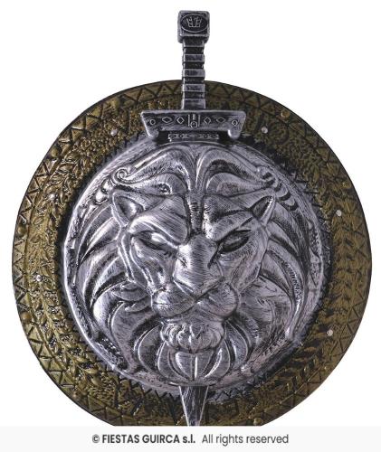 SCUDO DA GLADIATORE CON LEONE 44 CM E SPADA 48 CM