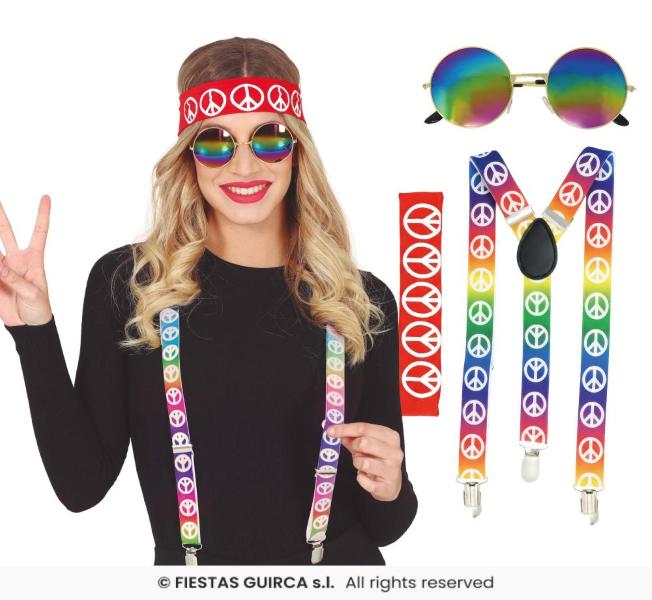 SET HIPPIE 3 PEZZI FASCIA, OCCHIALI, BRETELLESET HIPPIE 3 PEZZI FASCIA, OCCHIALI, BRETELLE
