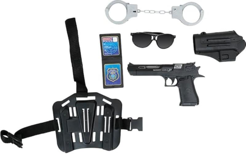 SET POLIZIA 6 PZ PISTOLA OCCHIALI MANETTE DISTINTIVO FONDINA