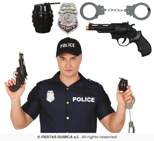 SET POLIZIA MANETTE, BOMBA A MANO, PISTOLA, DISTINTIVO