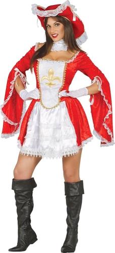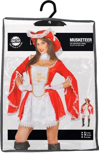 DIVENTA UNA CORAGGIOSA MOSCHETTIERA! - Include l'elegante vestito, il cappello e il colletto. Non include gli stivali né i guanti. Preparati per l'avventura e brilla in ogni festa! Disponibile nelle taglie 44 - 46 (XL) e nei colori rosso e bianco.