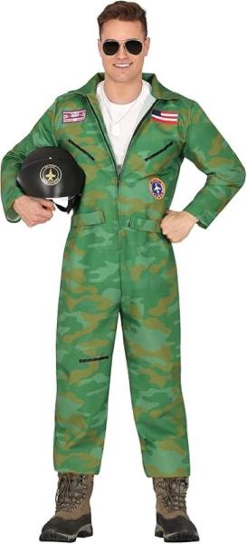 CONTENUTO di questo costume da uomo in maschera da pilota di jet da combattimento: tuta. NON_INCLUSO: occhiali da sole, camicia bianca, casco, ulteriori accessori