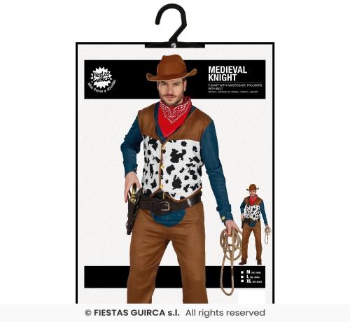 COSTUME DA COWBOY PER ADULTO - Realizzato in poliestere. Perfetto per le tue feste a tema del vecchio west. Colori: marrone e blu.