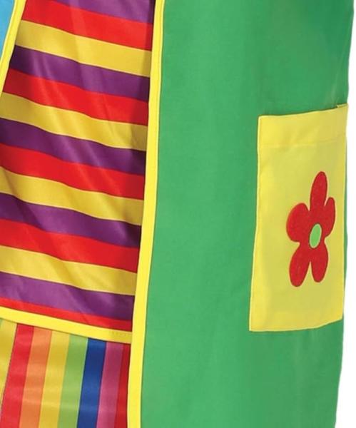 COSTUME DA FLOWY IL CLOWN PER ADULTI - Realizzato in poliestere di alta qualità. Ideale per animare le tue feste ed eventi. Osa essere l'anima della festa con il suo vivace design multicolore!