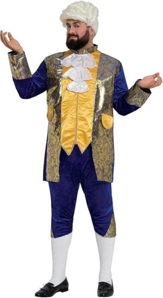 CONTENUTO di questo costume storico da uomo da duca blu: giacca con top e jabot attaccati, pantaloni. NON_INCLUSO: parrucca, guanti, calzini bianchi, bastone