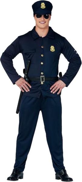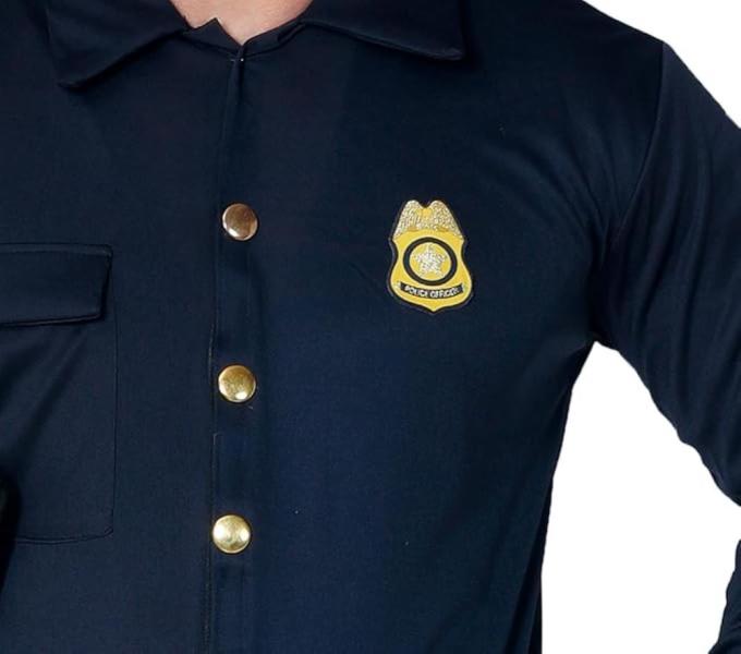 CONTENUTO di questo costume da polizia per uomo: Cappello, Camicia, Cintura. Pantaloni. NON_INCLUDE: Occhiali polizia, Mazza polizia. pistola altri accessori polizia