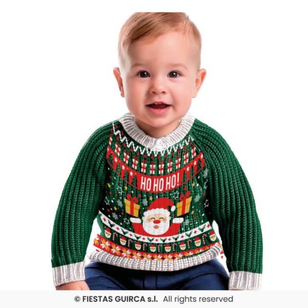 MAGLIONE XMAS NATALIZIO VERDE LANA NEONATO TAGLIA 18-24 MESI