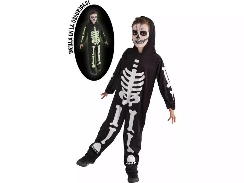 COSTUME SCHELETRO FOSFORESCENTE PER BAMBINI - TAGLIA 3-4 ANNI EXP_6175