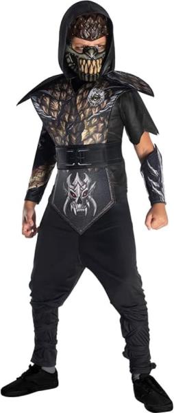 Costume: questo costume da Ninja per ragazzi e ragazze comprende top con cappuccio e tabard con pantaloni, cintura, maschera e guanti. Chiusura posteriore in velcro per indossarla facilmente