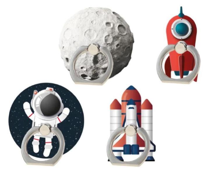 Supporto per smartphone con anello realizzato in acrilico e metallo - Assortito in 4 design ispirati al cinquantesimo anno dall'allunaggio