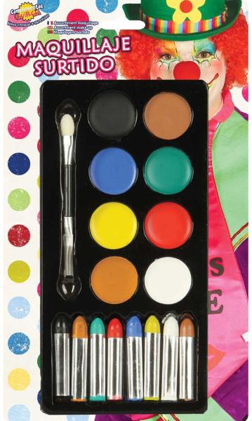 Set trucco per carnevale piccolo ma carino! Contiene 8 crogioli colorati con cui si può lavorare su una vasta area, gli 8 pennarelli sono destinati al trucco di sottigliezze come linee tenere. L'applicatore aiuta ad applicare il trucco e può essere nuovamente lavato con acqua tiepida. La vernice di trucco è nuovamente lavabile.